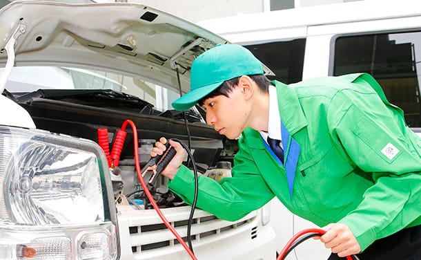 認定自動車技師がお伺いしますバッテリー上がりに関する厳しい研修を突破した認定自動車技師をお客様の元へ派遣いたします。