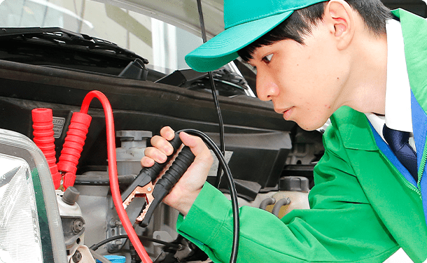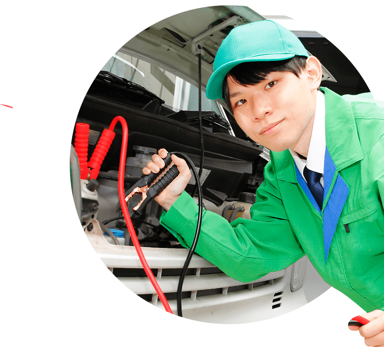 認定自動車技師がお伺いしますバッテリー上がりに関する厳しい研修を突破した認定自動車技師をお客様の元へ派遣いたします。